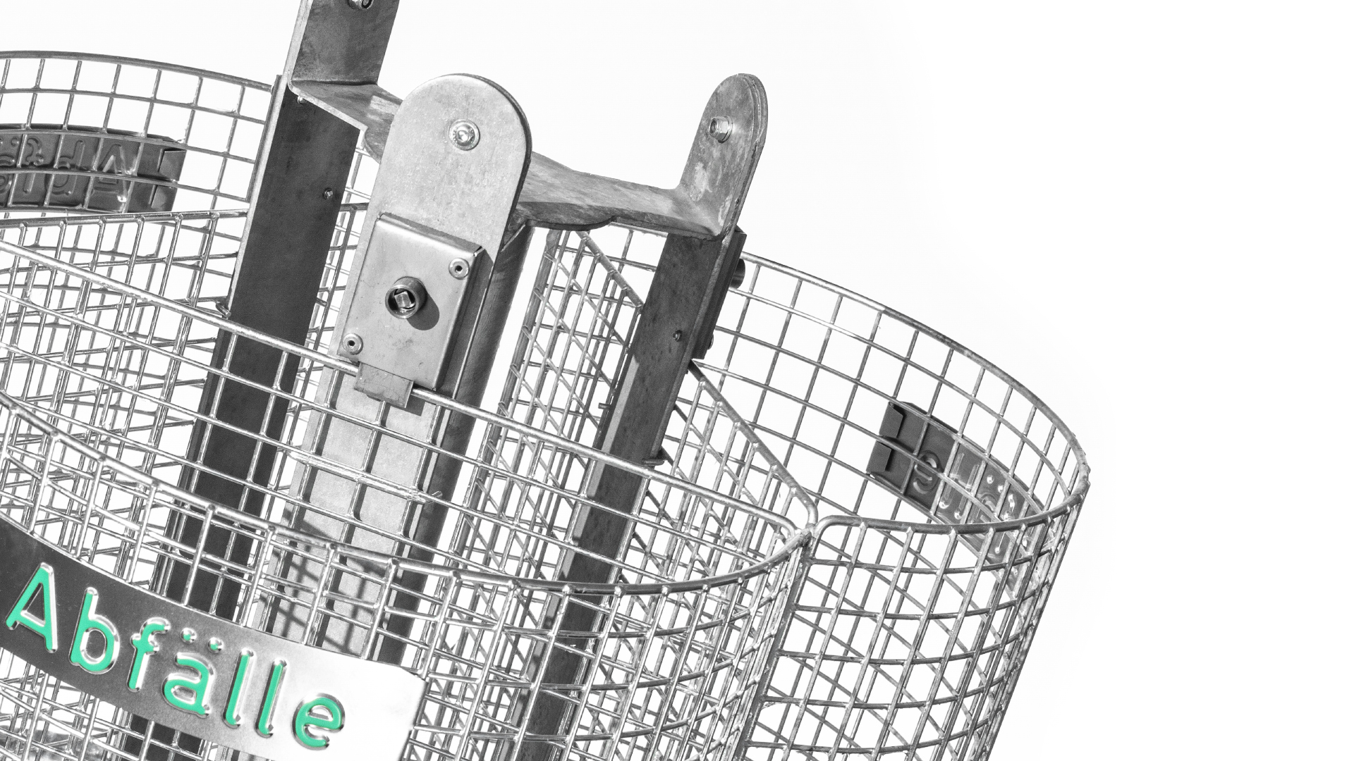 Drahtabfallkorb aus Punktschweißgitter, rund, feuerschlussverzinkt oder RAL 6010 grasgrün, mit zusätzl. Blechsockel, ohne Füße, Winkelprofil 15 x 15 x 2 mm zur Befestigung an Schiene und Ständer.Höhe ca. 60 cmø 40 cmGewicht ca. 4,5 kgInhalt ca. 75 l