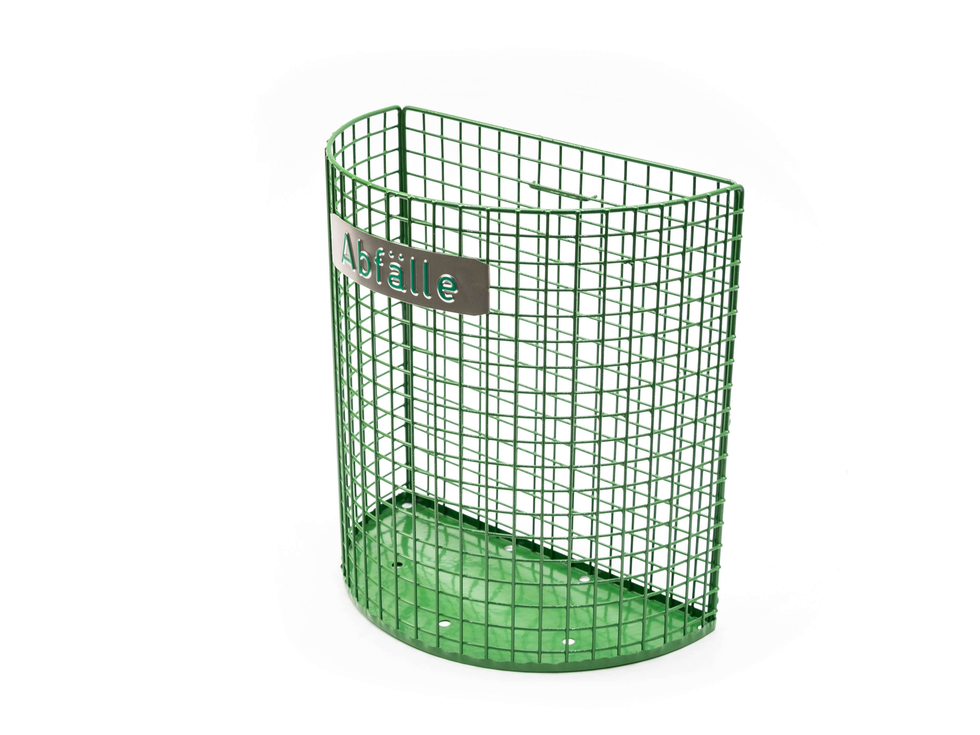 Drahtabfallkorb aus Punktschweißgitter, halbrund, feuerschlussverzinkt oder RAL 6010 grasgrün