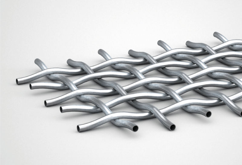 Innovation: Die gewebten Aluröhrchen sind bei Stößen nachgebend und behalten ihre Form. Mit Aluminium in Norwegen aus erneuerbaren Energien von Hydro REDUXA hergestellt mit zertifizierten max. 4kg CO2-Emissionen (pro kg Aluminium).